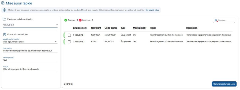 9. To check that the form rule has been correctly applied, click on Quick updateto select a folder and the appropriate form.