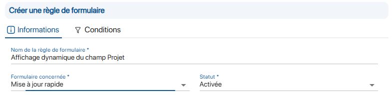 Creation - Form rule Dynamic display of project field - informationCreating form rule conditions