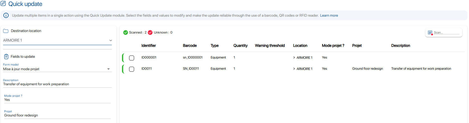 Result of automatic display of the Project field