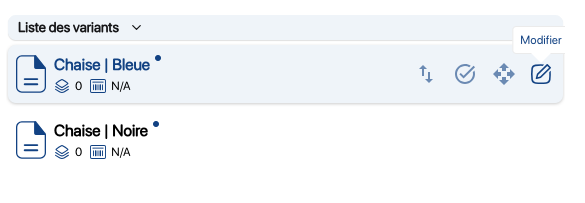 1. Click on a product containing variants or batches. 2. In the Variants and Lotssection, click on Modify to make changes to the desired variant or batch. 3. Go to Informationyou can modify field values: 4. Save your changes with the Save. 5. To create a new variant or lot, click on the Create variant or lot button. 6. Go to Information fields below to create a variant: 7. Save your changes with the Save.