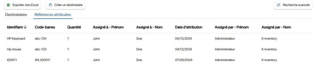 Functionality Track allocated referencesfeature of the K inventory online inventory software enables you to consult the list of products and equipment allocated to the various recipients.