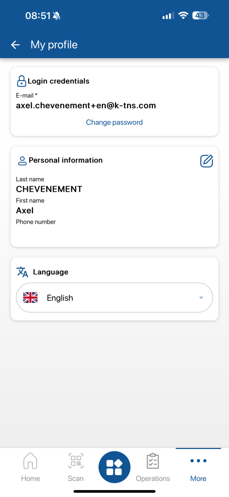 You can view and modify your contact details, access rights and company information such as name, number of employees and business sector.